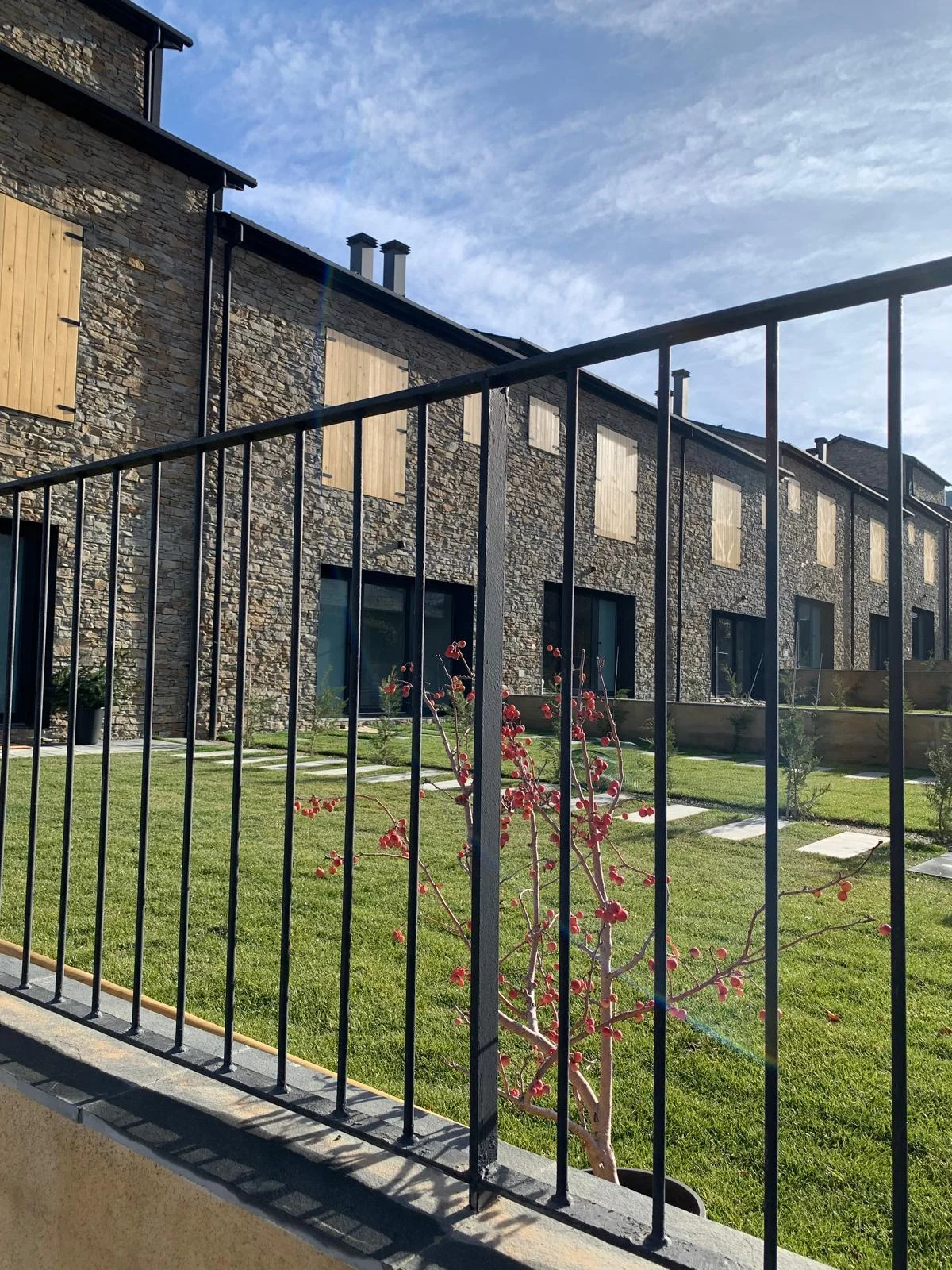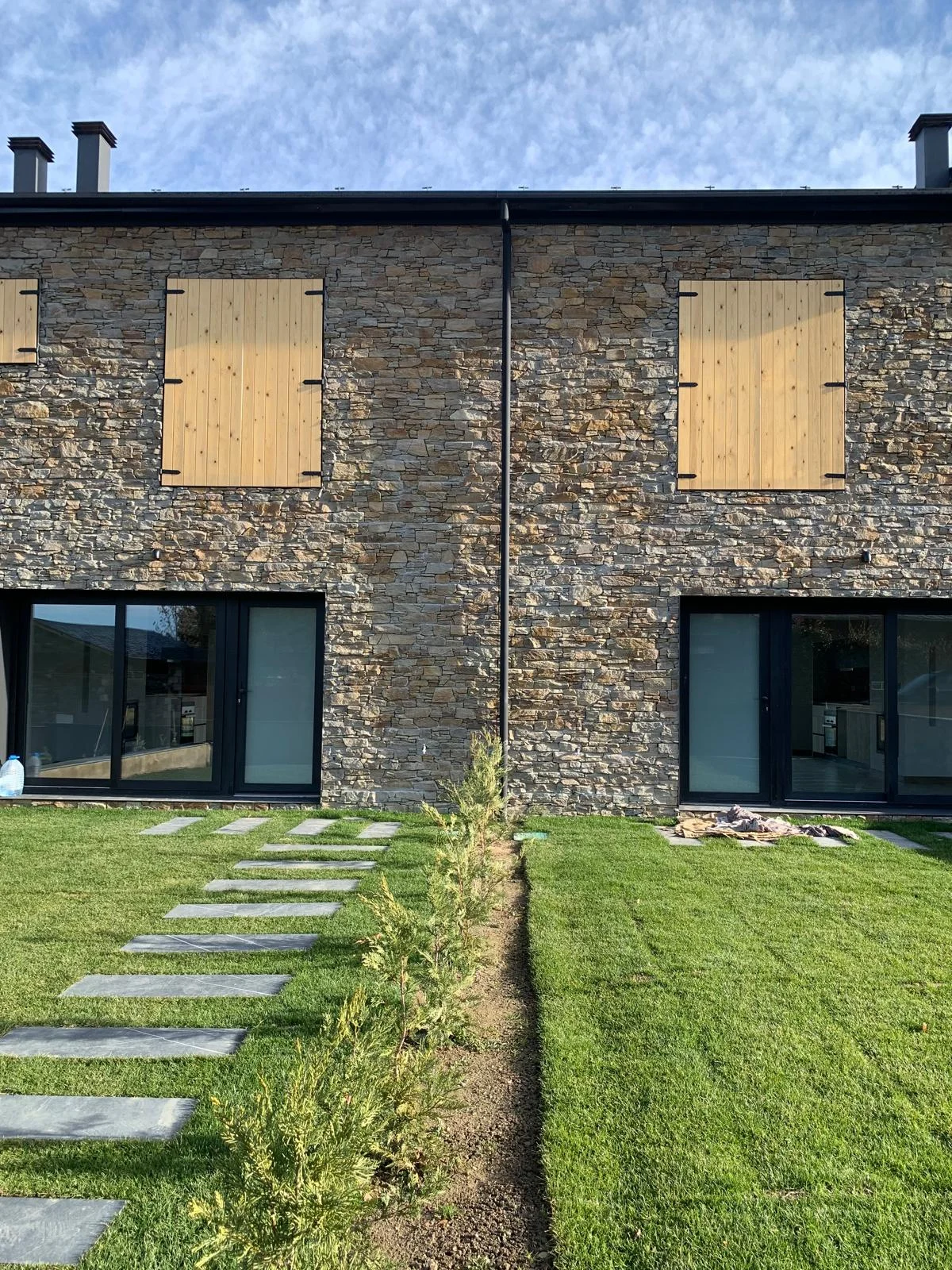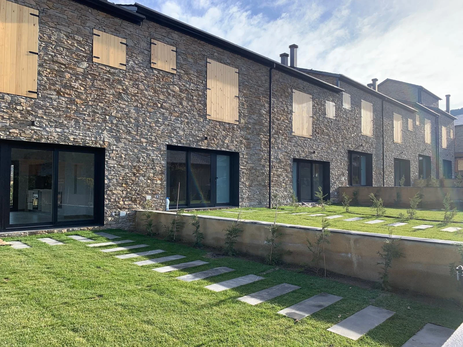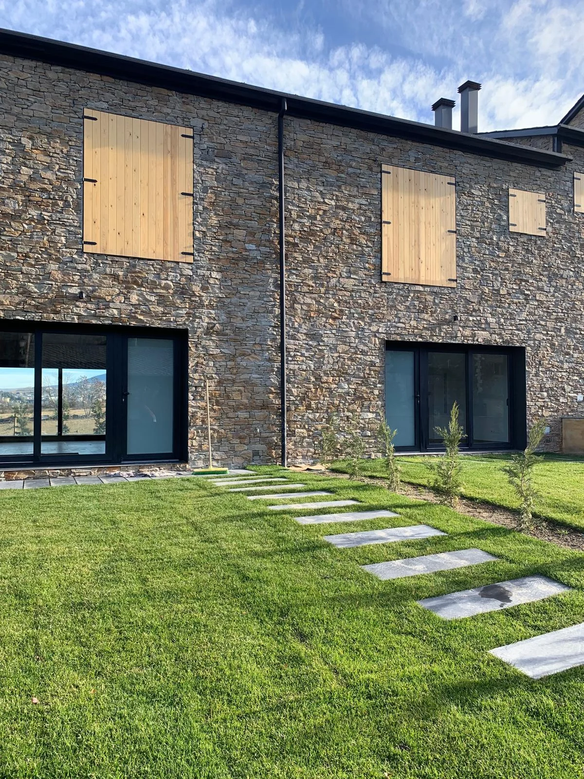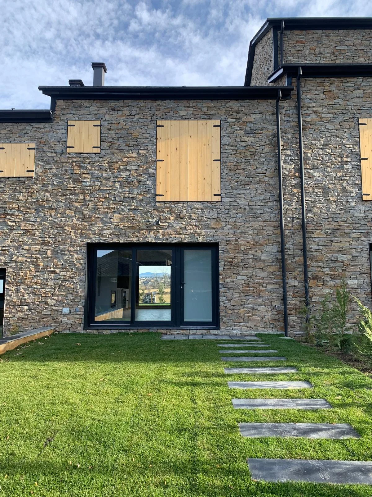 La imagen exterior del conjunto responde al equilibrio entre los elementos tradicionales con fachada de piedra y cubierta de pizarra, con elementos actuales de carpintería y persianas oscuras, creando una estética moderna adaptada a las características del lugar.