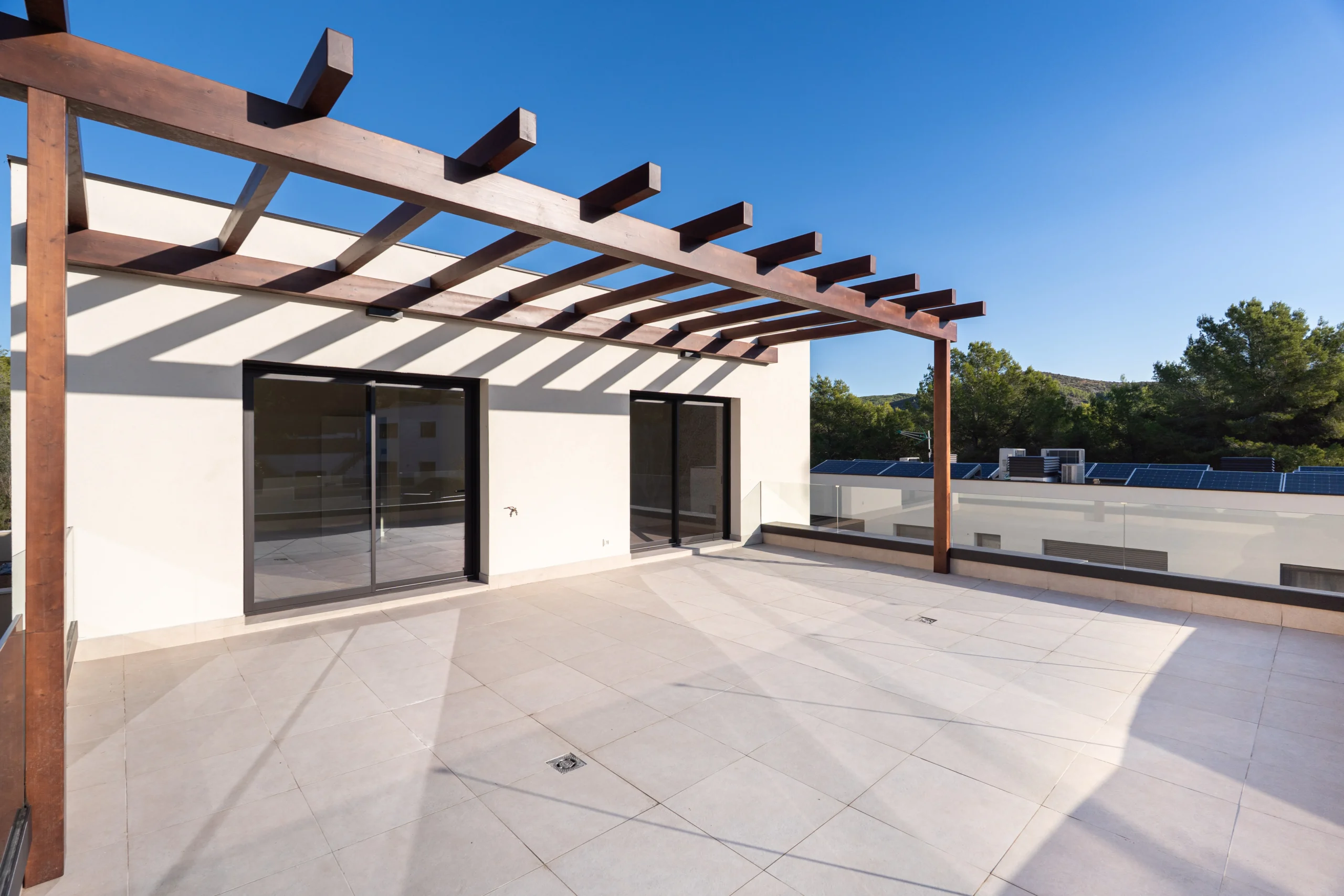 Cada vivienda cuenta con espacio de jardín con piscina en conexión con la zona de día, y de terraza con la zona de noche.